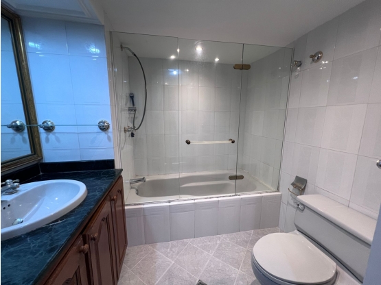 Área 130 m2, 3 alcobas, la pricipal con baño, bañera y vestier, todas las alcobas con closet, mas alcoba del servicio con closet y baño, el apartamento cuenta con un total de 3 baños, estudio de 9 m2, sala comedor, cocina integral, zona de ropas, excelente iluminación, parqueadero doble lineal.