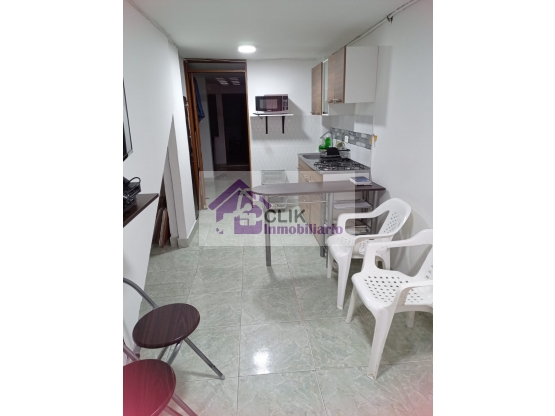 Primer piso: apartaestudio independiente, cocina integral, sala, baño, una alcoba, zona de ropa.